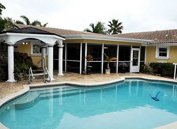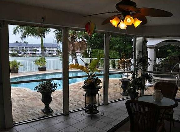 Open Sailboat Water!! This original Ruttenburg home was built in 1971 and updated by the current owner last in 2005. This three bedroom, two bath Intracoastal Waterfront home features a spacious split floor plan, family room, inside laundry, office and screened patio. The heated saltwater pool and grotto style hot tub, complete with waterfall into spa, faces directly east positioned perfectly for fantastic sunsets! The dock will accommodate a 60' yacht or sail boat with quick and easy access to the Gulf of Mexico via Blind Pass. This home boasts mature Florida native landscaping with many outdoor lighting features and has a climate controlled garage.