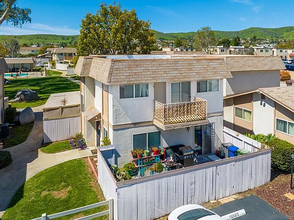 This 2 bedroom, 1.5 bath, Santana Ranch townhome is located right in the heart of beautiful Santee! The open-concept living and dining areas have plenty of natural light, laminate flooring, and sliders leading to the fully fenced, private, patio area, great for BBQing with friends & family. The primary bedroom offers a walk-in closet, sliding doors to the view balcony, and there is a spacious shared bathroom. Additional property highlights include an inside laundry room and assigned parking. Great complex with a community pool, spa, and green space to walk your pets. Conveniently located for shopping, dining, Santana High School, and enjoying Santee Lakes. Easy freeway access.