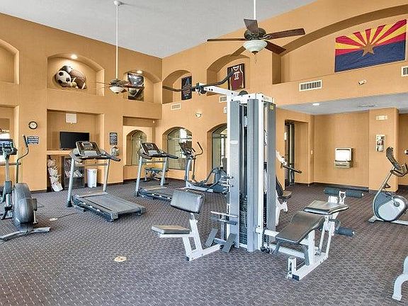 GATED COMMUNITY, GROUND FLOOR UNIT, SINGLE LEVEL. FULLY FURNISHED. NICE LAYOUT VERY COMFORTABLE NEAR THE POOL. AVAILABLE MAY TO OCT KING BED, LEATHER RECLINERS, LARGE BATHROOM AND 2 SLIDERS TO BALCONY. COMMUNITY HAS A GYM, HEATED POOL & HOT TUB. CLOSE TO THE 101 & I-10; WESTGATE ENTERTAINMENT DISTRICT; HOCKEY ARENA; FOOTBALL STADIUM; TANGER OUTLETS MALL; CASINO & 15 MINUTES FROM AIR FORCE BASE RENTER PAYS ELECTRIC AND INTERNET