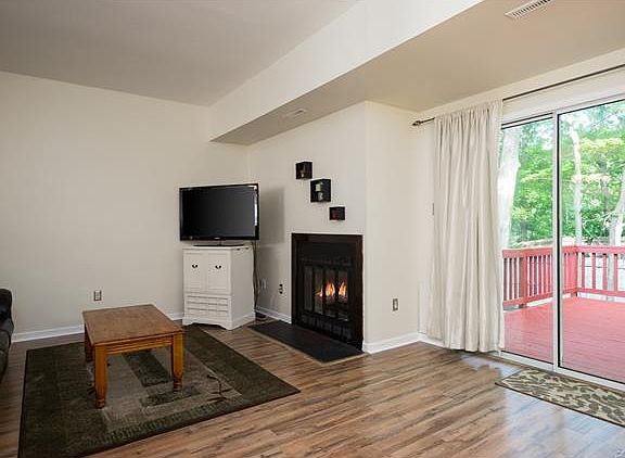 Come out and see this wonderful end unit that has just been painted and new flooring installed. You will love the open dining room, Kitchen, and Family room. The living room has a gas fireplace and large sliding doors that open to a large deck and rear yard with privacy fence. Upstairs there are 2 large bedrooms and 2 full bathrooms. Enjoy summers by the pool and winters by the fireplace in the living room. This home is ready to move in.