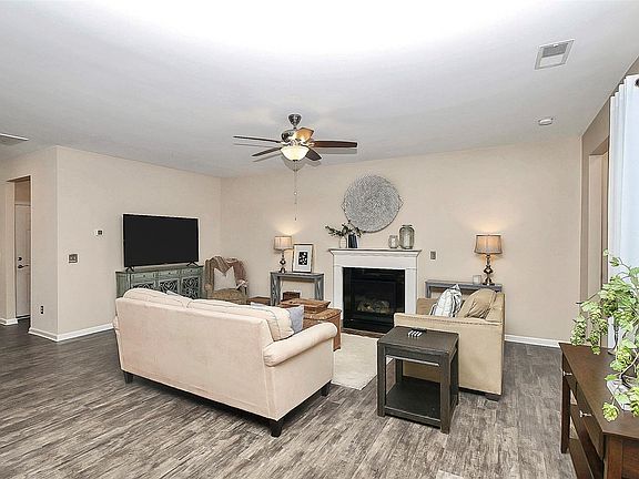 Wonderful open floor plan 2 bedroom plus office, fully upgrade ranch home w/ low maintenance – HOA maintains yards! Great home inside & out w/ covered patio w/ ceiling fan & additional large paver patio to enjoy fully fenced in yard. Upgraded Kitchen w/ granite countertops, tile backsplash, walk-in pantry, huge island & stainless-steel appliances including microwave & gas range. Dining area features picture frame & crown moldings. Primary bedroom boasts large walk-in closet off primary bath w/ dual granite vanity, tile floors & tile surround shower w/ seat & frameless glass. Secondary bath also has tile floors & granite vanity. LVP flooring runs throughout the rest of the home. Additional upgrades include storm doors, gas fireplace w/ blower, 2” blinds, ceiling fans, crown in laundry. Side-by-side driveway leads to oversized 2 car garage w/ extra storage, keypad, & additional attic storage w/ pulldown stairs. Community features clubhouse w/ fitness center, pool & pickleball court.