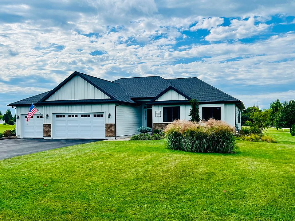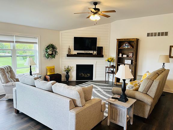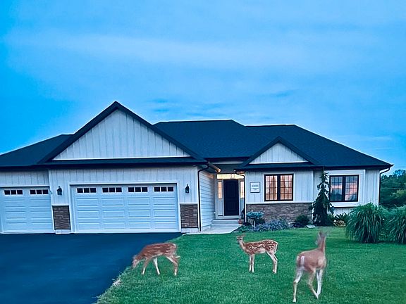 This 1.22 ACRE COUNTRY PROPERTY is a "BETTER THAN NEW," CUSTOM BUILT 2019 ranch home! Tons of unique features and upgraded finishes both inside and out and all the finishing details are completed! A covered front entry opens to the foyer with sight lines to the Great Room, Dining Room, & Kitchen allowing for amazing everyday living. Ceilings start @ 9' and Vaults to 10'. Great Room has corner Gas Fireplace with FLOOR TO CEILING SHIPLAP ACCENT & RUSTIC BARN BEAM MANTEL. Dining Area with custom lighting & STUNNING all white Kitchen with Quartz Countertops & Stainless-Steel Appliances. The large island boasts a Farmhouse Sink, Breakfast Bar Seating, and makes for a gorgeous central hub for all gatherings! The gorgeous cabinets are staggered with crown molding and there is a walk in Pantry for extra storage! The main floor Laundry Room is right off the garage entrance. The spacious Primary Suite has a trey ceiling. And a private, spa-like, bath with a huge WALK IN SHOWER w/ FLOOR TO CEILING TILE SURROUND, dual sinks with Quartz countertops & generous walk-in closet storage system. Bedroom #2 has double closets and window bench seating created with a church pew. The full, finished basement is another retreat in itself. It features a kitchenette with shiplap finishes, more custom lighting, and quartz countertops. The family room has look out windows making it light and bright. Plus, a bathroom and a wonderful 4th bedroom with a walk-in closet to get lost in! There are also many large closets throughout and more storage in the basement. The yard has been professionally landscaped - making it a show stopper. This home is 2x6 construction. The backyard features a 12x14 Trex decking with aluminum railing - landing on a concrete patio slab. The coordinating 10x12 shed offers additional storage to the 3 car attached garage. Wonderful views to the 300 acres of Skare Park nature trails of the Flagg Rochelle Park District...VERY PRIVATE & PEACEFUL SETTING.