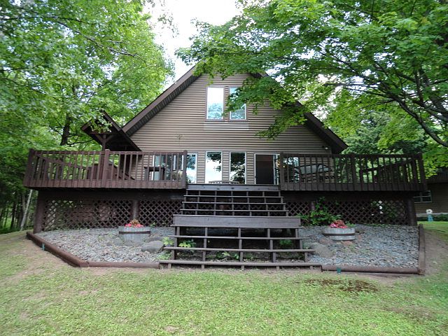 3 bdrm, 2 bath home on 200+/- ft of very private east shore frontage on beautiful Lake Gogebic. The home has an open living room with a wood burning fireplace & patio doors to a large deck overlooking the water. Cathedral ceiling over the kitchen & dining area provide a nice view of the 2nd level balcony. A 2 bdrm, 1 bath guest qtrs. is located above the garage/workshop. If privacy is high on your priority list, this is a must see! Call for an appointment today!