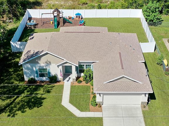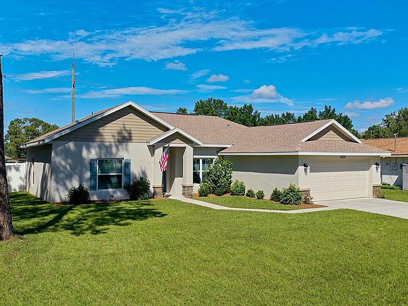 Beautiful curb appeal on this almost new (2018) 3 bedroom, 2 bath, 2 car garage home w/new 6 ft white, vinyl, privacy fence in a convenient location.This mint condition home offers a spacious split bedroom plan w/clean, simple lines offers an open 1600 sf of living space. It's picture perfect inside and out. You'll love the natural light throughout and the minimalists look and ease of the new Levelor roll up shades. Gorgeous modern kitchen with staggered height white upper cabinets with crown tops and stylish granite countertops, double stainless sink and the Frigidaire stainless steel appliances pull it all together nicely. There is corner lazy susan cabinet and a good sized pantry.Spacious inside laundry room with storage shelf . Stylish grey vinyl plank flooring throughout main living area, neutral carpets in bedrooms. A cheerful breakfast nook overlooks the lush, private back yard. You'll be able to enjoy the openness of the kitchen overlooking the great room. Pendant and recessed lighting make for a charming look. There is a 12 x 16 En suite with walk in closet, private commode and handsomely tiled step in shower with glass door. Tall Dual sink white vanity with subway tiles. A linen closet completes the bathroom.12 x 12 secondary bedrooms are equally light & cheerful Second bathroom has tub/shower combination.A sliding glass door opens to a covered lanai & out to a fantastic, lush, fenced yard. No rear neighbors.2 car garage w/service door, garage door opener & overhead storage shelves. Why wait to build when you can have this one just waiting for you.
