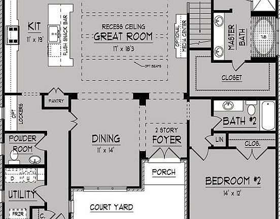 - Ceiling Fan(s), Kitchen Island, Pantry, Double Vanity, Walk-In Closet(s), Eat-in Kitchen, Vaulted/Coff/Tray Ceiling, Two Story Foyer, Smooth Ceiling, Master Down, Whirlpool(s)