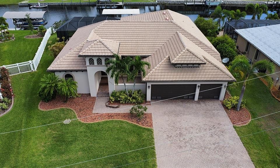 This perfect tropical retreat is waiting for you and your family to fully enjoy the indoor/outdoor waterfront boating lifestyle you've been dreaming about. This elegant Spanish Mediterranean style home has beautiful tropical landscaping, freshly painted exterior with a solid tile roof, a private front courtyard, an oversized screened pool lanai along with a dock and boat lift. Enter the home through the Courtyard into the separate formal living and dining area with large arched windows overlooking the front courtyard and slider access to the back lanai with canal views. The Owner's Suite is off the living room and comes complete with two walk-in closets, tray ceilings, split vanities, a shower and a jetted tub and slider access to the outdoor lanai. There is a cozy sitting corner with a large window providing waterfront views from the owner's suite. Back in the formal living/dining area walk through the tall archway to the informal/family wing of the property. You won't run out of counter space in this kitchen with a long breakfast bar and a large center island with wine fridge. In addition to tons of custom cabinetry, there is a closet pantry and additional cabinet storage in the adjacent laundry room. Double ovens plus a microwave, and a high-end refrigerator and dishwasher are all stainless steel. This kitchen includes a built-in desk and is open to a Dining Nook and large Family Room. This open floorplan provides direct views of the pool lanai and canal through an aquarium window in the Dining Nook and triple sliders in the Family Room. A lighted built-in wall unit provides a beautiful focal point for this wing of the house. Another wall is set up for lighted artwork display with electrical outlets and dimmer switches positioned behind the paintings. 3 bedrooms are on this side of the house, two of them share the hall bathroom right off the family room. The 4th bedroom is at the back of the house with canal views and the pool-access bathroom across the hall. High ceilings, crown molding, huge windows and lovely ceramic tile through all the public living areas provide an elegant backdrop. Sliders in 3 different rooms allow you to wander from indoor rooms to the gorgeous screened outdoor lanai. Walk down the sidewalk to your own dock with electricity, water and a fish cleaning station. The 10,000 lb covered boatlift keeps your boat clean and safe. Boat out under 3 bridges to the neighborhood lagoon and protective lock system. Outside the lock the freshwater Myakka River and Peace River pour into Gasparilla Sound. Boat south through the Boca Grande Pass to the Gulf of Mexico for deep sea fishing, exploring barrier islands or relaxing on our many sandbars.