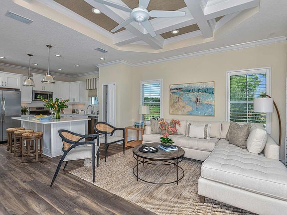 Airy and open, the Crystal Sand 2 paired villa home is comfortable and elegant, offering the feel of a private beach when you step inside. An open great room and kitchen area lead to a covered lanai, accessed through sliding glass doors or an optional pocket slider. A formal dining room can be a den with French door entry if you prefer. The master suite with window or door to the lanai in the bedroom includes two closets, one a walk-in. You can pamper yourself in a master bath featuring a walk-in shower, two sink vanities and a private water closet. The home makes a perfect retreat for a small family or as a second home.Let the Crystal Sand beckon you home to Wildleaf at North River Ranch. Call us to schedule an appointment today.