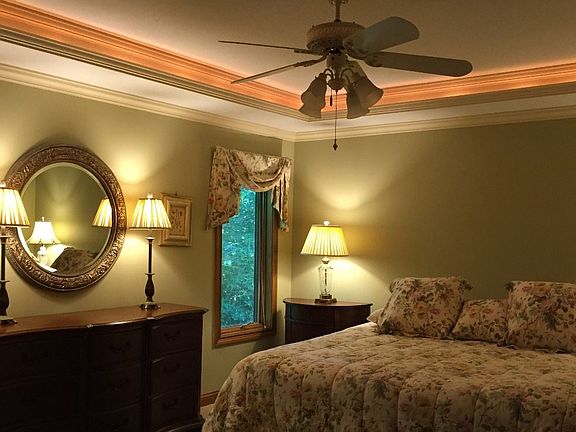 Beautiful 2 story cul de sac home in Emerald Lake addition. Three words describe this property: lovely, private, and serene! Georgeous views from every window! Features a stunning 2.1 acre wooded lot, including beautifully landscaped, park-like gardens and woods with trails and firepit. Interior features include: Dramatic 2 story foyer with hardwood floor, formal dining room, living room and family room with 10' ceilings. Beautiful wood trim, crown molding, and Mouser Custom Cabinetry throughout the home. First floor Master BR with tray ceiling. New flooring throughout including hardwood kitchen. Second floor features 3 bedrooms, bathroom, and bonus room with ample storage space! Finished lower level daylight basement features large entertaining area with wet bar and includes a work out room and full bath. Deck with spa for entertaining and relaxation.