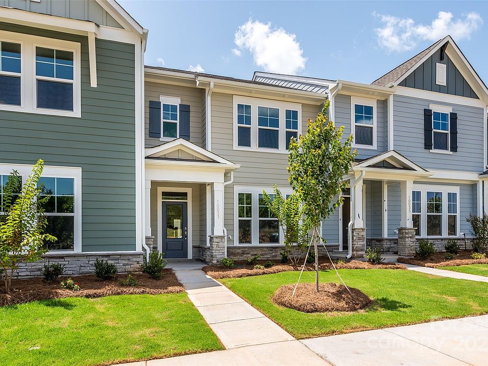 Style, comfort and top-quality construction make this new home in North Creek Village a great place to make your own! Embrace the lifestyle you've been dreaming of with this new home in Huntersville, NC. Upon walking into this beautiful townhome, you will feel welcomed and amazed by an open-concept floor plan that makes the space feel huge. At the front of the home, utilize the sunlit study for working from home or transform it into your dream space. The freedom of an open layout on the first floor makes the kitchen, dining and living spaces ideal for comfortable yet modern living. You'll also appreciate the added convenience of discreet storage beneath the staircase, ensuring a well-organized space for all your holiday decorations. Extend your living space outside, and entertain guests or relax after a long day on your covered porch.