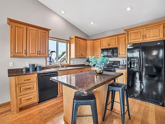 PRE INSPECTED & ready to move right in!! From the fully fenced in backyard, 3 bedrooms on the upper level and brand new oversized washer & dryer this home has it all! Step in from the welcoming front landing with closet & head upstairs to the open living room, dining room & kitchen. The bright kitchen with center island, disposal & large pantry make cooking a breeze. Walk out to the MASSIVE 2nd story deck just off the kitchen for super convenient grilling and entertaining. In the primary suite w/vaulted ceiling & 3/4 private bath, are views over the backyard. Still on this same level are 2 more bedrooms plus a full bathroom. Downstairs there is bedroom #4, an office, laundry room, 3/4 bathroom & truly oversized family room with a gas fireplace. This backyard...HAS IT ALL! It's fully fenced, has a playground, fenced in garden with separate entrance and in ground sprinklers! Around front there are 2 massive trees & a large 3 stall garage for ample storage! Plus, the roof is new in 2022!
