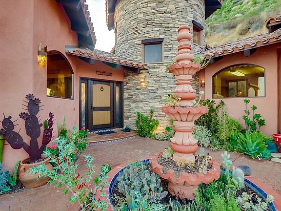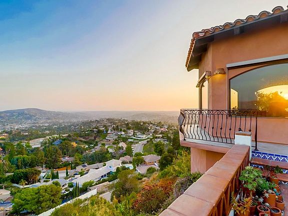 The owners call it El Paraiso... Paradise. Inspired from a year of travel in South and Central America, this home encapsulates the finest in Spanish architecture. Anchored high on Mt Helix's southern slope this home has intoxicating views of Mt. San Miguel, Isla de Coronado off the coast of Mexico, the Coronado Bay Bridge, Point Loma and downtown San Diego. No expense was spared creating this authentic Spanish colonial hacienda. Pristine palm & succulent gardens adorn the grounds. The arched Spanish mission entry greets you at the gate with an antique church bell from Guadalajara. Stamped concrete and succulent gardens lead you to a fountain entry with custom door and stain glass sidelights. It has an amazing home office or dining room with 270 degree views. Custom arched picture windows with motorized shade screens provide ocean views from every room. Saltillo tile floors flow throughout the home with pops of colorful Talavera tiles highlighting stairs and borders. Custom doors and cabinetry with Talavera style hardware, imported from Mexico, add to the home's authentic character. A grand turret connects the second bedroom reached by a spiral staircase with custom iron railings. A chandelier hangs above the staircase, originally ordered for the Valencia Hotel in La Jolla. Extensive lighting options allow for dramatic nighttime effects. Lush landscaping filled with unique palms, succulents, and ferns surround the pool and patios with designer fountains. Ideal for grand entertaining with open floor plan adjoining delightful pool and patio with a 'top of the world' setting. Attached casita/guesthouse with full kitchen overlooking sparkling, fully tiled, vanishing edge pool and spa. House comes with Dishwasher, Disposal, Dryer, Fire Sprinklers, Garage Door Opener, Microwave, Pool/Spa/Equipment, Refrigerator, Solar Panels, Washer, Water Filtration, Water Softener, Built In Range, Electric Oven, Ice Maker. Property recently sold . . . it is now FOR RENT only. Owner pays for pool service and landscaping service. Tenant pays all other utilities. 1 year lease, no pets, no smoking