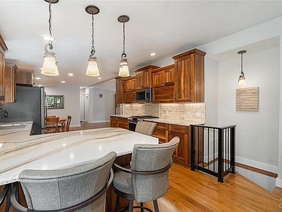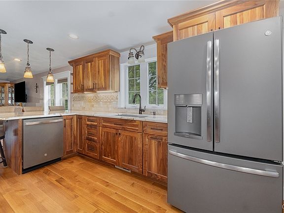 Enjoy year-round waterfront living with no flood insurance required! This 3 bedroom, 2 bath ranch features multiple bonus rooms including a possible 4th bedroom, office, and a stunning glass sunroom with custom shades. Enjoy energy savings with solar panels and a back up generator. Custom pantry, granite countertops, quarter sawn oak floors, and open-concept living enhance the home's function and charm. Outside, relax by the koi pond or launch from your private shoreline. Three garages provide abundant storage for vehicles, hobbies, or waterfront toys. A rare, move in ready retreat combining lifestyle, flexibility, and peace of mind.