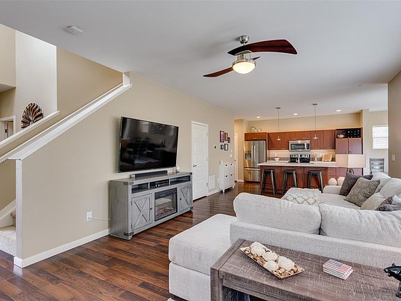 This is the one that you have been waiting for! This gorgeous Reunion home has been meticulously cared for and shows beautifully. This home lives large with vaulted ceilings in the entry and a wide open floor plan which combines an extra large living room and dining area. The open kitchen features stainless appliances, a large island, stylish back splash and a pantry. The upper level features three bedrooms and two full bathrooms including a fantastic master suite with a huge walk in closet. The laundry room is conveniently located on the upper level (washer and dryer included). Room for future expansion in the unfinished basement which has 2 egress windows, rough in plumbing and plenty of additional storage space. The delightful backyard is an entertainers dream with a concrete patio and professionally landscaped yard. Enjoy all that Reunion has to offer with parks, trails, shopping and restaurants nearby. Welcome home!