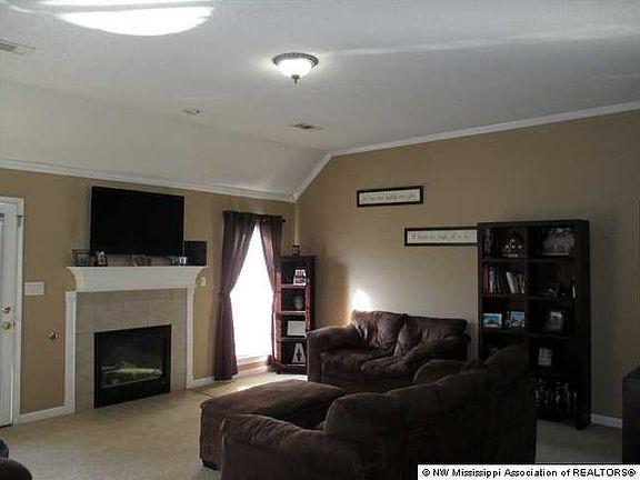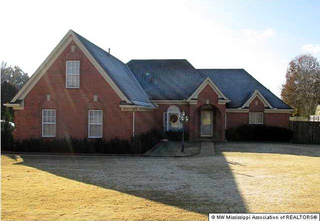 Offering on one acre a 4 bedroom and 2 1/2 baths home, plus game rm and bonus rm in convenient Olive Branch location. Open floor plan features formal dining rm with wood laminate flooring and arched window; huge great rm with vaulted ceiling and fireplace with gas logs; bright breakfast area with windows that overlook private rear yard. Spacious kitchen boasts two pantries; snack bar; tile flooring; stainless steel appliances including built-in microwave, dishwasher, and oven with smooth cooktop. Large laundry rm has built-in ironing board plus cabinets and counter space. Large master BR down with vaulted ceiling; door to rear deck; luxury salon master bath retreat offering separate vanities, walk-in shower, upgraded rubbed oil bronzed fixtures, tub w/jets and custom tile surround; tile flooring; plus walk-in closet. Two additional BRs down split from master with shared full bath with tile flooring. Upstairs offers 4th BR, 31.5x10.5 game rm, and 30x10 bonus rm w/wood laminate flooring and French doors, plus half bath. Other features included huge rear yard with privacy fencing, double side load garage, brick flower beds, 2-inch blinds, deck, security system, smooth ceilings, architectural shingle roof, walk-in attic storage, tile in kitchen and all baths. Well-cared for and updated. 100% USDA financing if qualified. Call now.