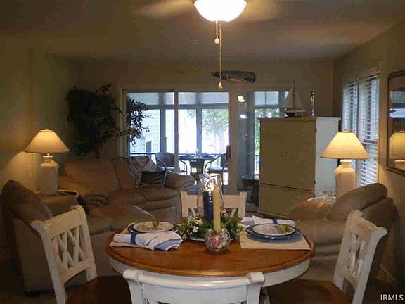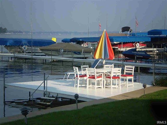 GREAT SECOND FLOOR WAWASEE CONDO that is ready to move into. Recent updates include new cabinets, tile, carpet, paint and more. Furnace is approximately 10 years old. Furniture stays except for a few items. Fresh and clean! Includes pier space on WAWASEE, great deck at the lakefront to enjoy the lake ....especially the sunsets. 3 season porch off the living room that expands your space for family gatherings. Low maintenance fees. Detached garage in a secured storage area.