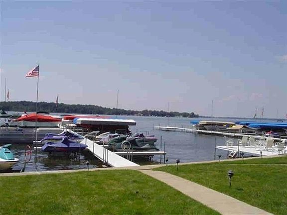 GROUND FLOOR CONDOMINIUM IN ONE OF THE MOST COST EFFECTIVE COMPLEXES ON THE LAKE!. Enjoy Lake Wawasee from this charming 2 bedroom 2 bath condominium with no worries about maintenance. New carpet throughout. Includes a pier spot for your boat. Come home and enjoy sitting on the deck and watching spectacular sunsets over Wawasee. Nice open concept living area, enclosed 3 season porch, detached 1 car garage within a large secured area for storing your boat off season if you desire. A great place to be year round or as a retreat from the hectic city life. Low maintenance fees include outside maintenance, pier in and out, snow removal and more. Enjoy the largest natural lake in the state at a minimal price.
