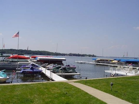 IF YOU HAVE EVER WANTED TO LIVE IN A TREE HOUSE THIS FITS THE BILL..A RECENTLY UPDATED 2 BEDROOM CONDOMINIUM IN ONE OF THE MOST COST EFFECTIVE COMPLEXES ON THE LAKE!. Surrounded by stately trees with a green canopy for several months of the year. Enjoy Lake Wawasee from this 2 bedroom 2 bath condominium with no worries about maintenance. The vaulted ceiling in this 3rd story condo makes the living area feel open and spacious. Stainless appliances in the open kitchen, newer flooring in the living room, kitchen, foyer, laundry and bath. Includes a pier spot for your boat. Come home and enjoy sitting on the deck or your 3 season porch and watching spectacular sunsets over Wawasee. There is a detached 1 car garage within a large secured area for storing your boat off season if you desire. A great place to be year round or as a retreat from the hectic city life. Low maintenance fees include outside maintenance, pier in and out, snow removal and more. Enjoy the largest natural lake in the state at a minimal price. Pet friendly complex.