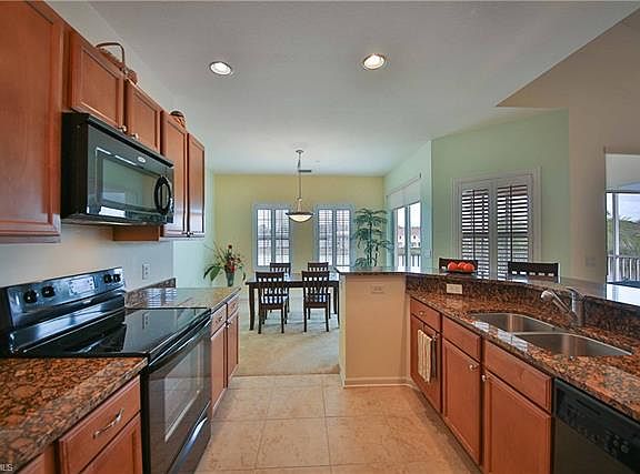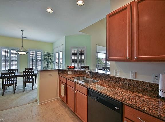 Outstanding 2nd floor unit in Marbella. One of eight largest units in this community with impact resistant windows. 3 Bedrooms, 2 Baths with a 1-car garage. Enjoy the beautiful lake view from the eat-in kitchen and lanai. The second bedroom suite is perfect for your visiting guests. Excellent condition with its newly painted walls. Marbella is a gated community with a resort style pool, clubhouse with movie theater, full kitchen for entertaining, fitness and a sauna in both men's and women's locker rooms. The proximity to I-75 and airport makes this irresistible. Furnishings are negotiable.
