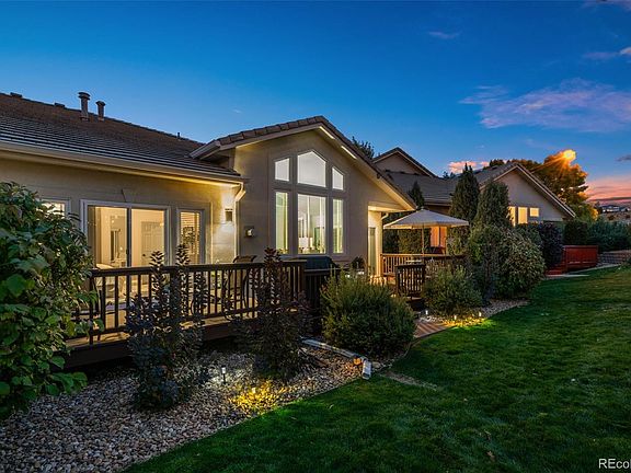 Welcome to your move-in ready patio villa in a tranquil, gated community. This beautiful South-facing ranch offers the perfect blend of luxury, comfort, and open design. The living room boasts high ceilings, tall windows, and a cozy gas fireplace. Sliding doors open to your own private backyard deck, perfect for BBQ’s or a morning cup of coffee. A separate dining area and counter-height seating at the island make entertaining a breeze, while the airy kitchen is a chef's delight, featuring stainless steel appliances, a 5-burner gas cooktop, under-cabinet lighting, white cabinets, and a quartz/granite composite single-bowl sink. Your spacious primary suite is a true retreat, complete with a cozy sitting area and sliding doors that also lead to the 12' x 32' deck. The private remodeled spa-like bathroom features a step-in shower with a large bench, a spa shower system, double sinks, an 11' quartz counter, custom cabinetry with ample storage, linen storage within the bath, custom doors, custom lighting, a makeup area with additional storage, Bluetooth speaker, and additional ventilation for maximum air flow. Closets, one walk-in, both with custom built-ins, ensure you have plenty of storage space. Two additional bedrooms and an updated bathroom on the main floor provide versatility for guests or a home office. A custom main floor laundry room offers counters for folding, task lighting, custom hanging options, a 32" stainless steel sink, and smart storage. The lower level offers an incredible 600 sq ft of flexible bonus space with egress windows, 9-foot ceilings, and an abundance of recessed lights, making it bright and open. Additionally, there is plenty of unfinished space for your storage needs or a workroom. Just a short commute to Centura Health Center, Colorado Christian University, the Federal Center, amenities, restaurants, and minutes to I-70, this low-maintenance, “lock-and-leave” home is the epitome of comfortable, elegant living!