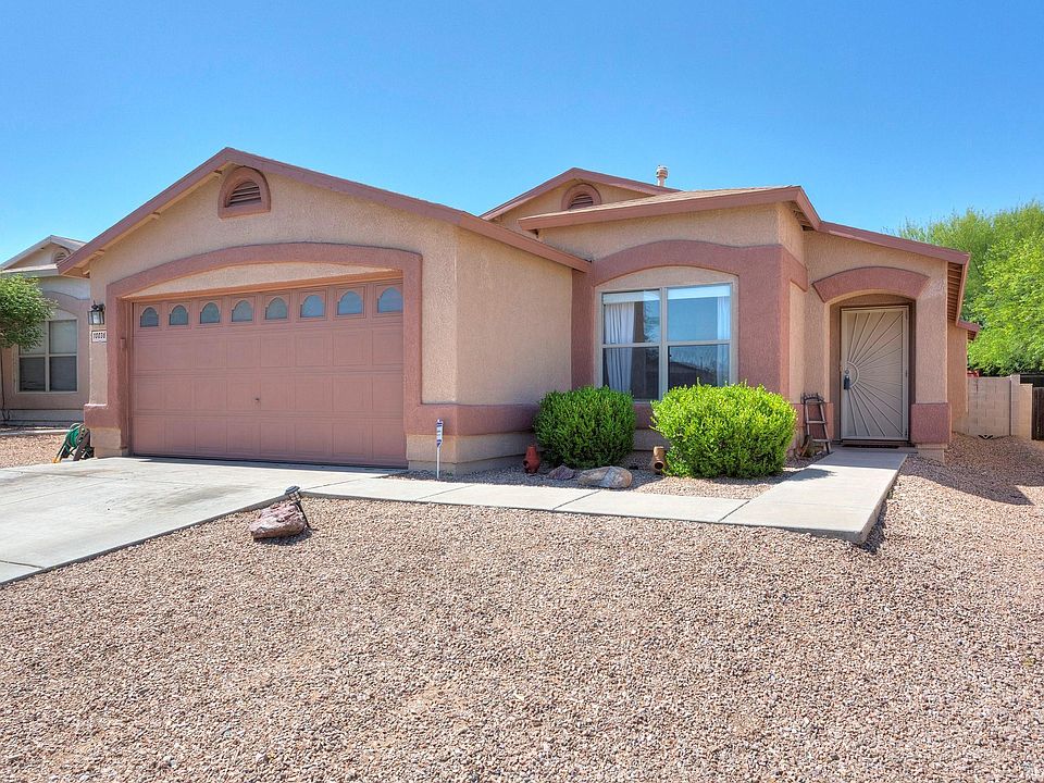 Stunning 3BD/2BA contemporary home on cul de sac in Rita Ranch on Tucson's growing SE side. Open floorplan, ceiling fans throughout. Spacious kitchen with extended breakfast bar, eat in dining area and plenty of cabinet space. Master suite features large walk in closet. Amazinge enclosed backyard with covered patio & pavers, built in BBQ, firepit and shade trees offers a private oasis, perfect for entertaining. 2 car garage. Low HOA fees. Convenient to schools (1 block to middle school), park, shopping, I-10, Raytheon & Davis Monthan AFB. Home is lovingly maintained, don't miss out!