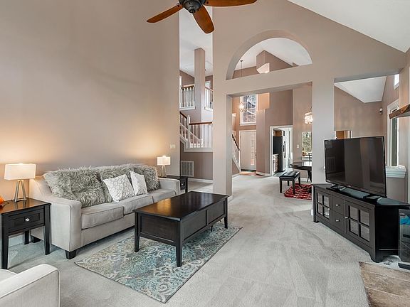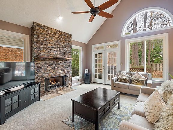 Conveniently located in the heart of Raleigh, this beautiful home is nestled in a charming golf community. Perched atop a hill on a cul-de-sac, the home boasts an open floor plan with high ceilings and plenty of natural light throughout. The main level features a cozy living room with a fireplace, a formal dining area, and a bright and airy kitchen with ample cabinet space and stainless steel appliances. The downstairs owner's suite is well-appointed, high vaulted ceilings, with an open en-suite, two walk-in-closets, one of which could be mistaken for another small bedroom! Upstairs, you'll find a generous secondary bedrooms at opposite ends of the home, allowing for maximum privacy! Don't wait on this one to pass you by...