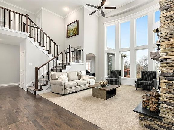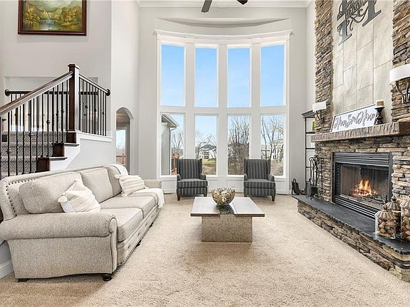 This is the one you've been waiting for! Custom build just a few years young, with many upgrades you will love. This popular Marisa Grand 1 1/2 story by McFarland Custom Builders is ready for you to move in and enjoy. The large cul-de-sac lot will give you privacy, but you may see a deer or two running around! You will LOVE the natural light from the beautiful two-story windows in the living room. And you will want to hang out in there next to the AMAZING floor-to-ceiling stone WOOD BURNING gas start fireplace! The laundry room/office (conveniently adjoining the pantry) is the perfect place to stash your things to clean up your gorgeous kitchen in a flash! And how ABOUT this kitchen? Island perfect for entertaining, stainless appliances, and custom cabinets. Each day you can enjoy that beverage on the deck overlooking the wooded creek. The spacious owner's suite has a cove ceiling in the bedroom and a jacuzzi tub in the bath. You will LOVE all the storage in this bathroom! The upstairs loft looks into the living room and on out those two-story windows. You will also find three bedrooms and two bathrooms, perfect for your family. Just you wait until you go down those stairs to the ULTIMATE walk out lower level with lvp flooring! Did I MENTION entertaining? There's everything you need down there to socialize with friends. Whether it's serving drinks at the bar, showing off your skills at the pool table (that stays) or moving outdoors to the patio (that's the entire length of the house), you will be the envy of everyone that comes over! Don't worry about your valuables in this place! There's a SECRET SAFE ROOM down there too (10x10-ish) with a coded entry that locks up anything you need to keep secured. This house is smart! From the keyless front door to the safe room lock and the high-tech temperature/motion-controlled zones in between, you will love every single thing about this house.