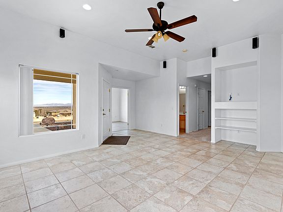 This immaculate home is in an ideal location in a quaint city with stunning views from every angle. The tile roof, extended drive way and covered entry patio are exquisite outside features. Upon entry, the open layout gives a warm welcome. The living room, kitchen and dining area are all tiled. The kitchen has a central island, walk-in pantry, and stainless steel appliances with a sink overlooking the backyard with a covered patio and storage shed. The bonus room which is off the living room has a grand window, wood flooring, and a double door entrance. Down the carpeted hallway there is a full bathroom. Next is the laundry room with above-washer cabinets and tile flooring, acting as a mud room from the garage. The two car garage is attached and has a long work bench. Additionally in the hallway there is cabinet space and a linen closet. The bedrooms are carpeted. The master bathroom has a soaking tub, large shower, separate commode room, and dual sinks with beautiful vanity lighting.