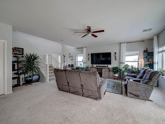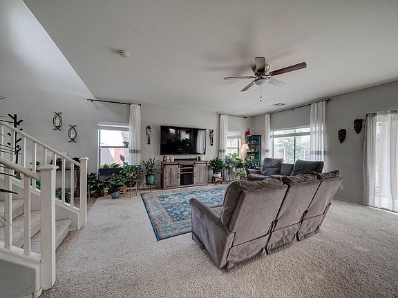 Spacious 3 bedroom, 2.5 bathroom located on a corner lot. Main level features large living room with tons of natural light, dining room, and kitchen with granite counters and eat-in bar, as well as powder bathroom. Second level features large loft for additional living space as well as all bedrooms. Two bedrooms with carpeted floors and full-sized closets, hall bathroom with tub/shower combo. Large master bedroom with en suite bathroom features soaking tub with separate standing showing, private toilet room and lots of counter space. Laundry located on main level with direct access to garage. Hugh backyard with covered patio, fenced in pool, detached shed and private gazebo, great for outdoor entertaining. Large grass yard. RV gate. Great location close to 202.