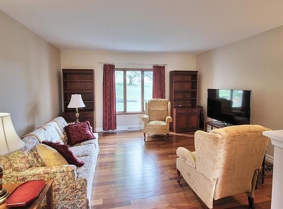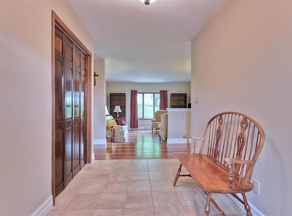 BACK ON MARKET with newly installed septic system plus new heat pump w/5 year transferable warranty! This spacious 4 BR ranch boasts 2 full & 2 half baths plus over-sized garage on acre lot. Pride of ownership throughout! Welcoming entry patio opens to large foyer. Versatile open floor plan has gleaming teak hardwood floors. Large living room, nearby dining room open to totally updated kitchen/w breakfast bar. All overlook family room w/entrance to patio & rear yard -- great for family gatherings & entertaining. Laundry/utility room & 1/2 bath lead to oversized 2 car garage w/workshop area. Bedroom wing is down a wide hallway -- total of 4 BRs & 2 full baths incl. guest room w/1/2 bath. Master suite is huge, private & luxurious, with its own private entry hallway, 4 closets, cathedral ceiling BR plus oversized bath. Updated hall bath & 2 more BRs complete this wing w/pull-down stairs to floored attic for storage. Convenient country location w/easy access to major roads.