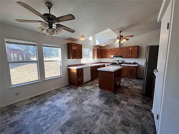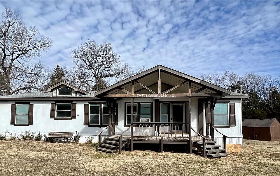 Nice home on over 13 acres. Three bedroom 2 bath, large kitchen, open living room and dining area. The Dormer window lets tons of natural light in. Fresh coat of paint inside and out. The front deck is covered and looks over the open land. Large shop with doors on both end, walk in door ,cement and electricity. A carport for your tractor and a few other storage buildings. Small house built over the storm shelter has a electricity and air conditioning. There are koi ponds and a fountain that are not in working order by the pool. Out of all city limits plenty of room to roam!