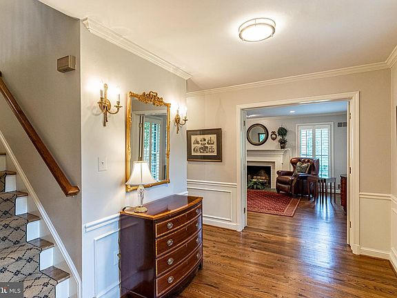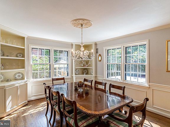 - Window Treatments, Walk-In Closet(s), Built-Ins, Dining Area, Eat-in Kitchen, Crown Molding, Open Floorplan, Wood Floors, Attic, Wainscotting, Breakfast Area, Upgraded Countertops, Kitchen - Gourmet, Family Room Off Kitchen, Chair Railings, WhirlPool/HotTub, Primary Bath(s)