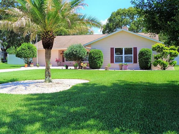 Meticulously-maintained, constructed by Alexander Custom Homes and tucked away in the peaceful Orchard Park. The private pool includes a new solar-heated salt water system and screened enclosure. Boasting hurricane-impact doors and windows, custom plantation shutters and separate well water for irrigation. Kitchen features a generous amount of cabinet space and storage, Silestone counters with a breakfast bar and a separate dining space. Large master bedroom with a private en suite including custom frame-less sliding shower doors, updated tile and a large vanity. Vaulted ceilings with a beautiful exposed wood beam in the bright and open living room, covered lanai overlooking the pool, huge half-acre lot with privacy, extensive professional landscaping, new vinyl fence, fresh paint, not in a Special Flood Hazard Area (flood insurance is not required), no CDD fees, no HOA fees, and located on a cul-de-sac street. Shows like a new home and pride of ownership is evident by the flawless workmanship and mindful improvements. Spring Hill is an amazing community perfectly situated to take advantage of all our Florida lifestyle amenities. We are near Weeki Wachee Springs, beaches, trails, parks, shopping, dining, and easy access to Tampa, Clearwater/St. Pete and so much more!