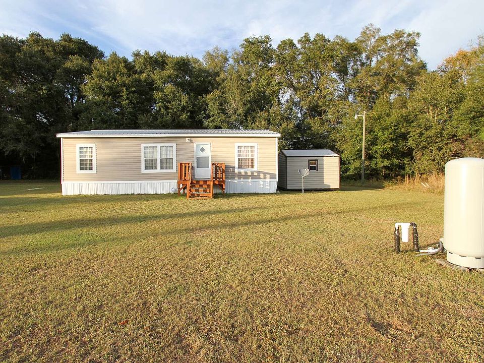 Beautiful Place to Call Home! This 3bed/2bath home is situated on a 1+ acre lot in North Florida. Rear deck overlooks back yard with scattered oak trees and pond. Grape arbor. The deer & other wildlife love to visit! Includes 12x12 shed. New metal roof in 2020. Split floorpan. Wood accent wall in living room. Kitchen cabinets have been updated & vinyl plank flooring replaced the original carpet. Handicap ramp on rear deck. Pride of ownership. Take a look today!