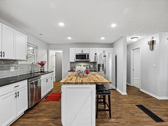 Inside, fresh new paint brightens the living space, while the updated kitchen features stainless steel appliances and a new butcher block island, perfect for meal prep or casual dining.
