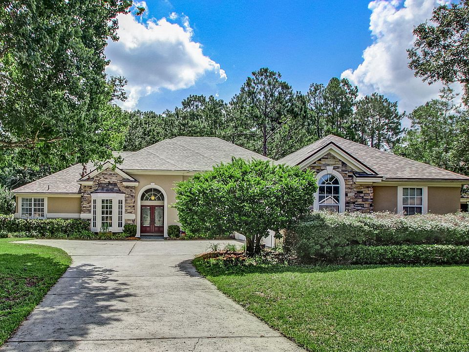Timeless stone veneer accents give this Deercreek Country Club home distinctive beauty and classic charm. Positioned on a stunning 1-acre wooded preserve homesite, this 2,477 sq. ft. home features: 12' ceilings, Office/BR, bay windows, French doors, hardwood & tile floors, Living RM opens to a Screened Lanai, Formal Dining RM has architectural mouldings. Floor-to-ceiling windows, wood burning fireplace & built-ins frame the Family RM. Updated chef's Kitchen with quartz countertops, pot filler & marble backsplash in 2019. Stainless steel appliances 2014, center island, 42'' cabinets, walk-in pantry, breakfast nook. Large Master Suite boasts: tray ceiling, walk-in closets, en suite w/granite top vanities, walk-in shower & soaking tub. New Roof 2020, HVAC 2019, Water Heater 2018. 3-Car Garage