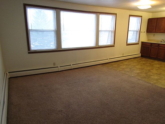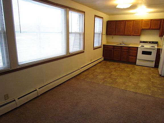 2 bedroom apartment with carpet and vinyl flooring throughout and only about 3 blocks from Minot State University. Kitchen cabinets newly stained with Cherry stain. Large windows for lots of daylight throughout apartment. Onsite laundry and heat and water are paid by owner and off-street parking. City park/playgrounds just across the street from apartment.