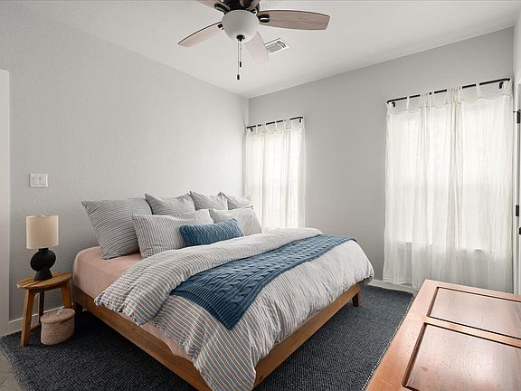 Enjoy the bungalow lifestyle in the charming Hill Country town of Blanco. This beautifully maintained two bedroom, two bath home offers comfort, efficiency, and a touch of artistry. The detached backyard studio is fully insulated with a mini split and north-facing windows, ideal for creative work year round. Rough-in plumbing adds flexibility for conversion to a guest house or ADU. The main house includes solar panels that keep utility costs low, while a UV light and HEPA filter in the HVAC system freshen the air. A whole house carbon filter, water softener, and reverse osmosis system provide fresh, clean water throughout. Step outside to a private oasis with mature oak trees, a gated native plant garden, raised vegetable beds, custom hardscaping, and a professional Rainbird irrigation system. The sweet scent of almond verbena drifts through the windows, while blackout blinds in the bedrooms create a restful retreat. Enjoy coffee on the porch, evenings by the fire pit, or a swim in the nearby river. The quiet neighborhood is home to birds and deer, with all three Blanco schools within walking distance. Centrally located, the property offers quick access to Fredericksburg, San Antonio, Austin, and all of the Hill Country. This home has been lovingly cared for and is ready for new owners.