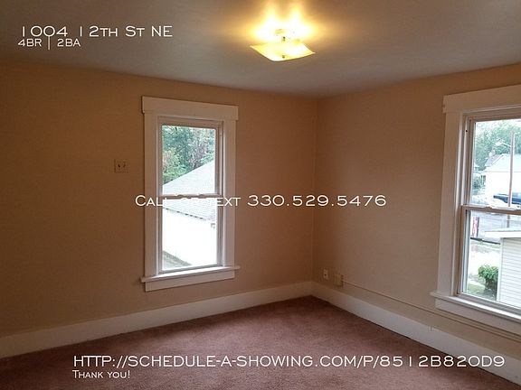 SCHEDULE A SHOWING ONLINE AT: showmojo.com/lh/8512b820d9 Welcome to 1004 12th St NE in Canton. Come see this move in ready 4 bedroom home. 1st floor Includes, living room, dining room and a 1/2 bathroom. Upstairs there are 4 bedrooms and a full bathroom. $25 NON-REFUNDABLE application fee. Tenant pays all utilities. Deposit is the same as one months rent. NO pets allowed. No appliances, 12 month lease. We do a background check for evictions and criminal history. Income must be at LEAST 3 times the rent amount (which is $2025 take home). Applicant must be able to show proof of income. Welcome to 1004 12th St NE in Canton. Come see this move in ready 4 bedroom home. 1st floor Includes, living room, dining room and a 1/2 bathroom. Upstairs there are 4 bedrooms and a full bathroom. $25 NON-REFUNDABLE application fee. Tenant pays all utilities. Deposit is the same as one months rent. NO pets allowed. No appliances, 12 month lease. We do a background check for evictions and criminal history. Income must be at LEAST 3 times the rent amount (which is $2025 take home). Applicant must be able to show proof of income.