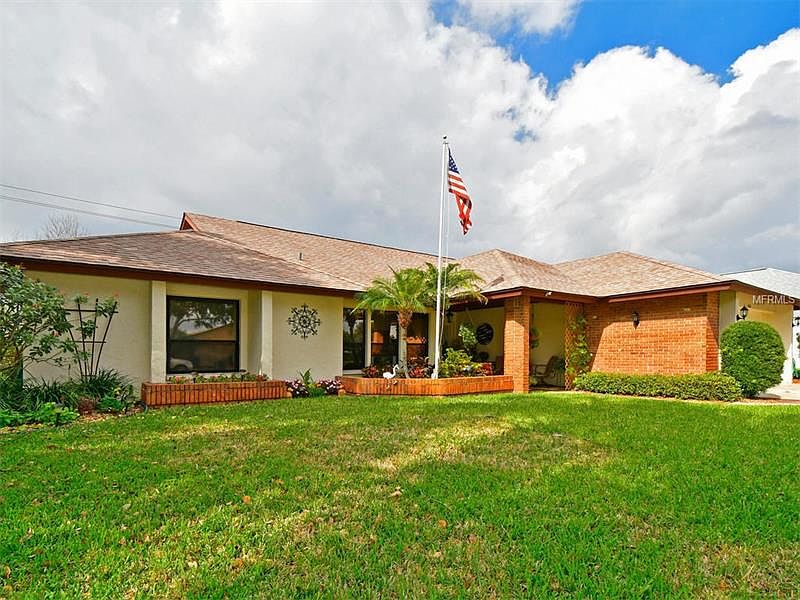 Look no further for the perfect house to call your new home! From the moment you approach the front door, which has beautiful flooring and covered area with lush potted plants, you will fall in love! This meticulously maintained home in the heart of northwest Bradenton is move-in ready and has been loved and cared for by the current owner. Inside and out you will see the attention that has been given to keeping this home in great condition through the years. Beautiful Tiger Wood flooring adorns most of the living area, high vaulted ceilings give a grand feel to the living and dining room, split bedroom plan is perfect for the family or guest and master bedroom leads to the large lanai which provides heated hot tub with beautiful and serene lake view. French doors from living room lead out to the oversized lanai which is perfect for entertaining or relaxing while enjoying the bird life and lake view. There is a well for keeping the lush lawn and landscape looking gorgeous too. Pine Meadows is conveniently located near schools, shopping, Desoto Memorial Park and Robinson's Preserve. Just a few miles to Anna Maria Island and the gulf beaches. Hurry, this gem won't last long!