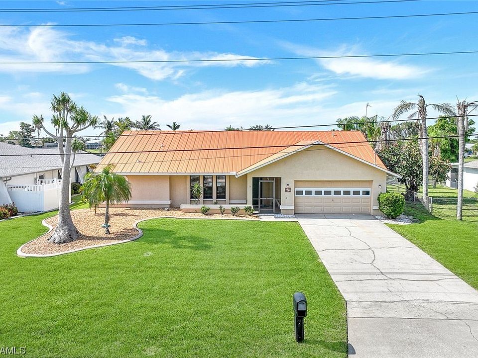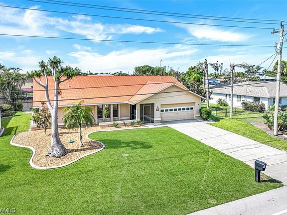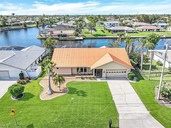 NO FLOOD insurance required! Welcome to your dream home in Cape Coral! This stunning, single-family, Gulf access home boasts 3 bedrooms, 2 bathrooms, and a 2 car garage. Inside, you are greeted by beautiful tile flooring and a remodeled Cornerstone kitchen with quartz counters, shaker style cabinets and stainless steel appliances, making it a Chef's dream come true! The open floor plan is perfect for entertaining guests, with a spacious living room and dining area that lead out to the extended lanai. Enjoy a refreshing dip in the in-ground pool, complete with a waterfall feature and outdoor kitchen barbecue. Take in the breathtaking views of the intersecting canals from your waterfront property, and cozy up by the outdoor fireplace on cooler evenings. This home also features a new metal roof, March 2023, and a house generator to ensure that you'll never be without power, even during the worst storms. This home truly has it all, from the luxurious amenities to the stunning views. Don't miss out on the opportunity to make this your forever home. With all of these incredible features, you'll never want to leave your own private paradise. Come see it for yourself, today!