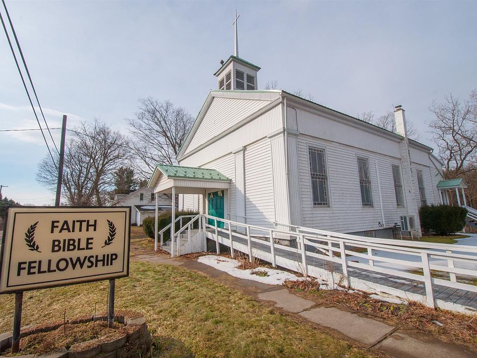 Live inspired in this former church. Everything you'd expect, stained glass windows, HUGE great room with room to add additional bedrooms, bathrooms kitchen and more. This would make for an amazing house conversion or could be an art studio, performing arts theater, recording studio or use as is for a group gathering space. Adjacent parking lot can accommodate 35-40 cars. Park-like setting with gorge in the rear with year round stream. Lansing Schools and a short drive to downtown & Cornell University.