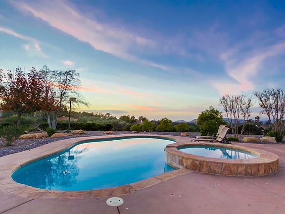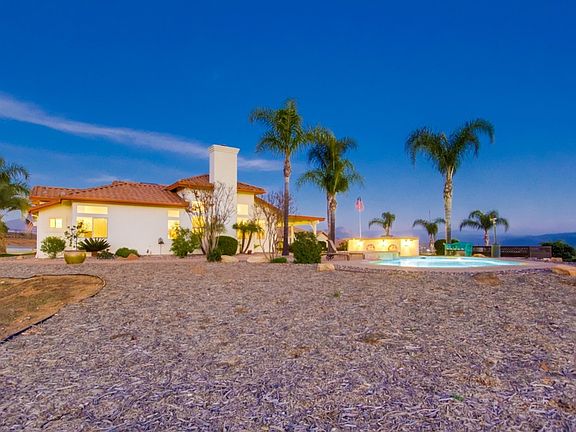 This home has amazing panoramic views from every room of this custom single story. It sits upon 2 acres in a wonderful neighborhood. Enjoy the cool breezes on warm summer nights and on a clear day you can see the ocean. Sparkling redone pool and spa, outside kitchen area and BBQ. Full RV parking with hookups. Gorgeous chef kitchen with cherry wood cabinets, double ovens warming drawer and center island provide plenty of counter space. huge 1100 SF permitted residential use area.