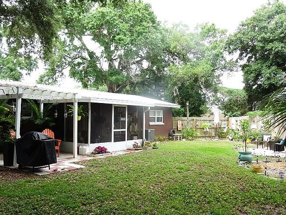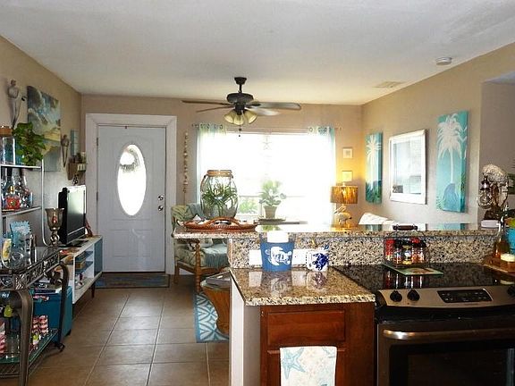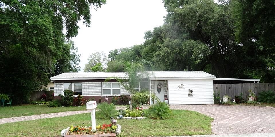 This adorable home was completely remodeled in 2016. The home has tile throughout. No carpets to clean here. The beautiful kitchen has granite countertops, stainless appliances and a built in pantry around the refrigerator. The master bedroom has a double closet and remodeled bath with a stackable washer and dryer. The other bedrooms and bath are on the other side of the home and good size. There is a screened patio overlooking a huge fenced backyard (new fencing). It is your very own private paradise. There is also a trellised patio for grilling. The carport (12x29) has been partially screened and has plenty of room for 2 cars. The fencing in front of the carport can easily be removed. The corner lot is over 1/4 acre and has a brick paver circular drive. No HOA! No CDD! Call this one home today.