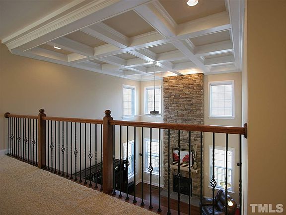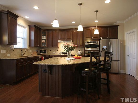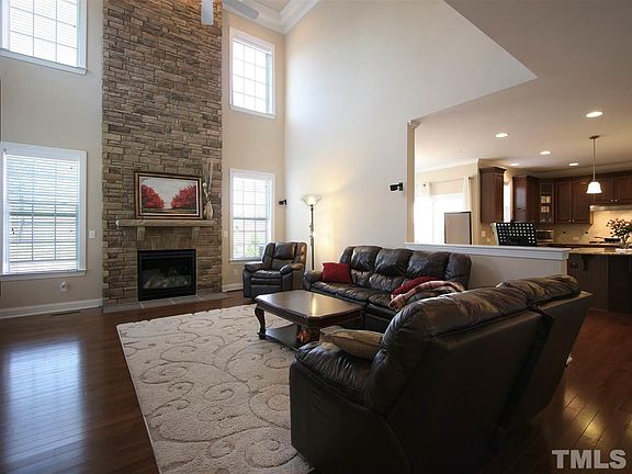 Verbally under contract; awaiting relocation company's signatures. Beautiful brick-front executive home with finished basement in west Cary's sought-after Weldon Ridge. Two-story family room with coffered ceiling and spectacular floor-to-ceiling stacked stone fireplace. Gourmet kitchen with large island, 5-burner gas cooktop, and wall ovens. Large master suite with sitting room. Walk-out basement has large recreation room, home theatre, exercise room or bedroom, and full bath.