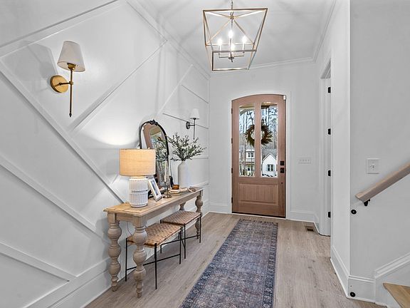 Love new construction but don't want the wait! This 1+year old home is your answer. Comfortable elegance abounds. Sellers have taken pride in ownership to a new level. They have added plantation shutters across the front of home, accent moldings on foyer and primary bedroom walls, 5 other rooms with professionally installed wall paper accents, landscape lighting, fenced in backyard and a garden shed. Living and entertaining made easy with the open floor plan, gorgeous gourmet kitchen with walk in pantry and bar area, opens to family room. Family room has a gas log fireplace flanked by built ins and a little nook under the stairs, great place for family pets or hideaway, accented with a mini barn door. Slide open the expansive glass doors and enter the porch that offers a cozy place to relax with its own fireplace and deck. Primary bedroom, bath and walk in closet offer an escape oasis! Second floor touts both a bonus room, media room, 3 additional bedrooms and walk in storage. When you enter this home you will think you are in a model home as no detail has been missed. Absolutely Stunning!