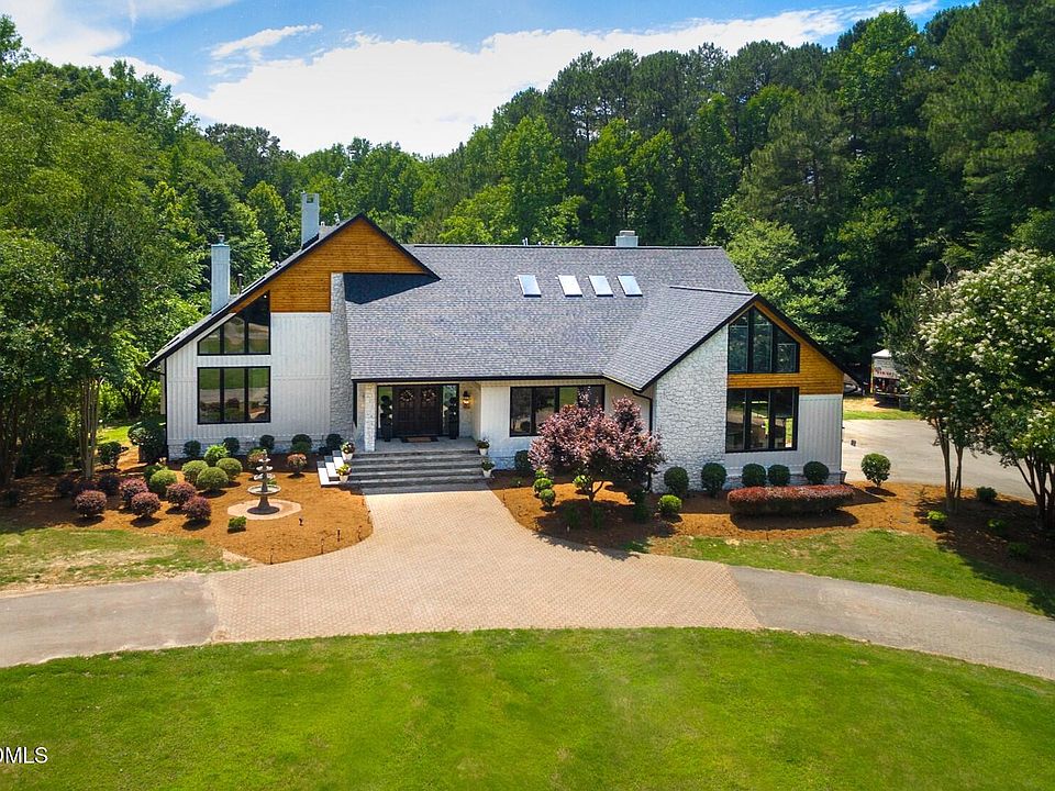 Builder's Personal Estate! Situated on a stunning 2.71-acre homesite bordering Falls Lake, this completely renovated residence with over 10,000 square feet showcases top-of-the-line finishes and exceptional craftsmanship throughout. Every detail has been thoughtfully designed to deliver a perfect blend of luxury, comfort, and timeless elegance in an unmatched natural setting. The home includes a fully finished basement showcasing a full kitchen, in-law suite, family room, and a spacious game room—ideal for entertaining, extended guest stays or multigenerational living. Inside, Mohawk RevWood Plus flooring flows through the main living areas. The gourmet kitchen is a true showstopper, featuring porcelain countertops and backsplash, a center island with a waterfall edge, GE Café refrigerator, double Z-Line stainless steel dishwashers, Z-Line double oven, farmhouse sink, and a separate scullery and mudroom for added convenience. The primary suite offers a cozy retreat with a custom accent wall, brushed gold cage ceiling fan, and a two-sided fireplace. The spa-like primary bath includes an oversized hydro-massage tub, porcelain surround shower, and Avant quartz countertops. The great room is designed for both comfort and style with stained ceiling beams, a dramatic floor-to-ceiling painted stone gas fireplace, and a wall of windows that fill the space with natural light. Step outside to the expansive deck that spans the entire rear of the home, offering serene views of the pond and close proximity to Falls Lake.