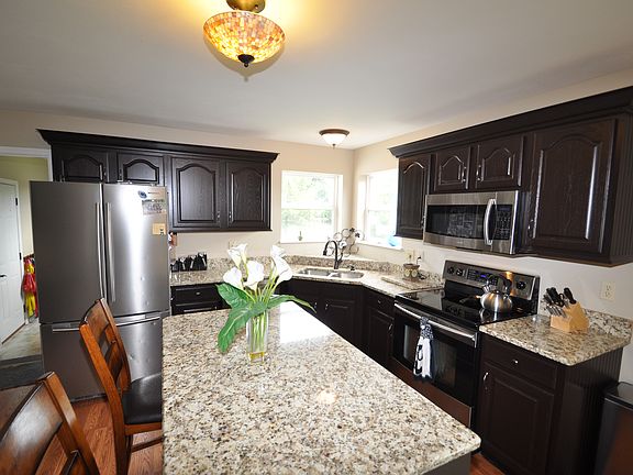 • Kitchen: Breakfast Bar, Center Island, SolidSurfaceCounter, Eat-In Kitchen, Pantry, Breakfast Room
