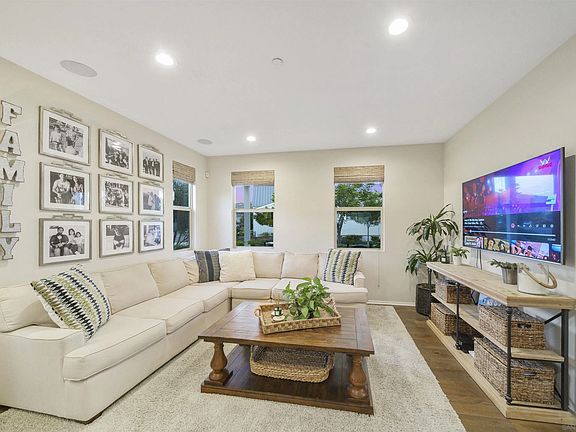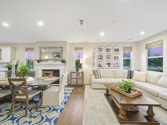 Stunning home in the highly sought after Village of Escaya. This former Prado model home sits on a corner lot with a beautiful front porch and offers 4 bedrooms and 3 full baths. This family-friendly residence has modern features with a thoughtfully designed floor plan. The chef’s kitchen features a large kitchen island with quartz countertops, stainless steel appliances, upgraded glass cabinets and 12 Paid off solar panels. A first-floor bedroom provides a private guest suite, and a spa-inspired master bath becomes a comfortable retreat. Upstairs loft, California Room and private yard offers versatile living spaces for casual dining and entertaining