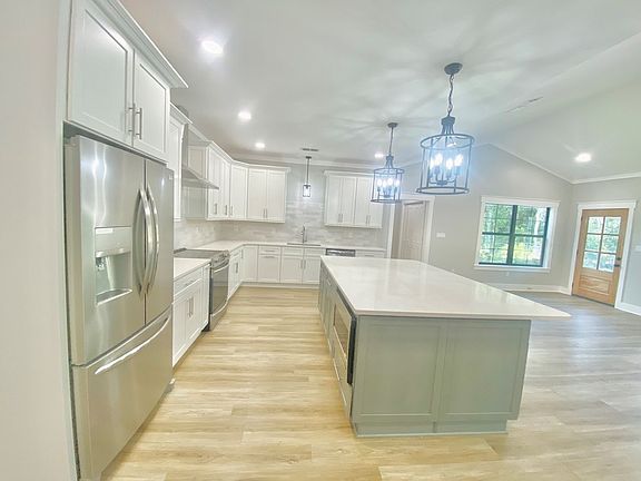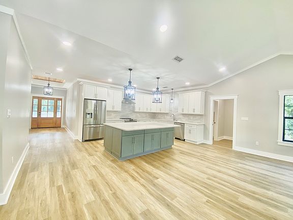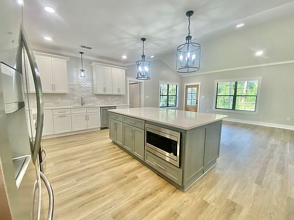 Seller Contact info: Rickeydonalson@gmail.com 229-400-1595. This beautiful new construction home is located on a large 0.88 acre lot in the Mallard Trace Subdivision in Bainbridge, GA. This 3 bedroom/2 bath split bedroom plan has top notch amenities and fixtures. The open floor plan has a vaulted ceiling in the living room and master bedroom. Beautiful mahogany front door with side lights allow natural light into the large foyer. All of the cabinetry in the home features soft close doors and drawers. The kitchen cabinets include upgrades of a pull out trash can, spice rack, roll out trays, and a pull out for baking pans. The kitchen features a Cloe white tile backsplash tile and Snowfall quartz countertops. The large island is perfect for entertaining and has seating room for up to 5 bar stools. The kitchen has stainless steel appliances and a large pantry. The master bathroom has a beautifully tiled zero entry walk in shower with glass door that meets ADA requirements. It also features a free standing soaking tub, separate water closet and a double vanity. The guest bathroom features a double vanity, linen closet and a porcelain tub with porcelain tile surround. A large front and back porch along with the garage adds 1082 sq ft for a total covered space of 3001 sq ft. NOTE: Driveway will be added with walkway to front porch.