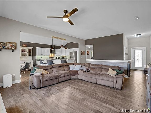 - Breakfast Bar, Ceiling Fan(s), Eat-in Kitchen, Kitchen Island, Main Level Primary, Mud Room, Open Floorplan, Split Bedrooms, Storage, Utility Room, Vaulted Ceiling(s)